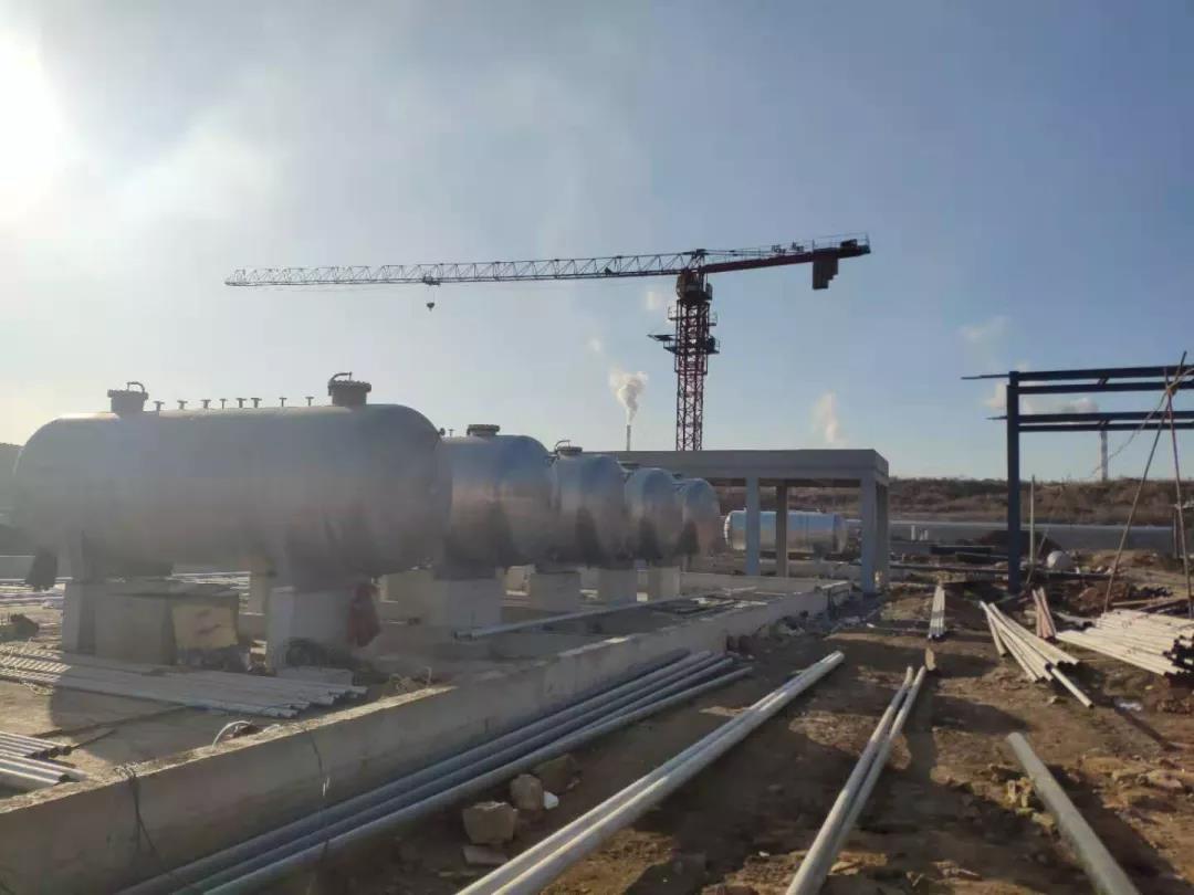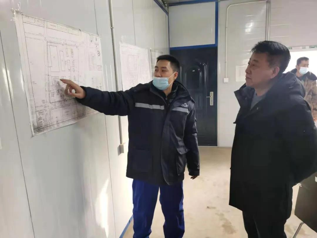 在查看外管廊管道架施工處時,李衛民對項目施工進度、工程質量、文明施工及精準制訂施工順序表示肯定。據悉,項目部自2020年5月開工以來,管廊上蒸汽管線是項目部最先施工處,由外線順管廊至公用工程用房注入水箱,加熱水箱內水后,再由供暖系統進行供暖循環,這一舉措不僅可以滿足車間內冬季進行施工,又保證了后續施工進度。