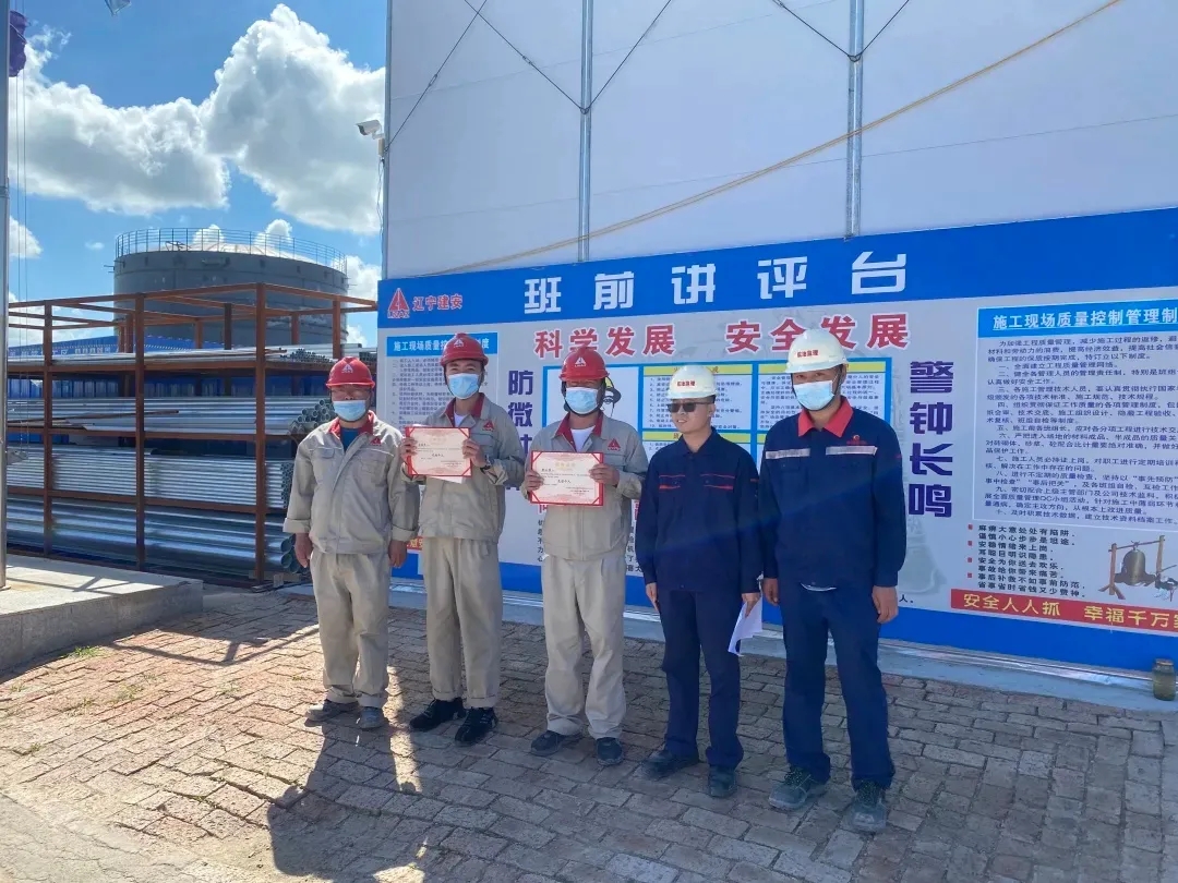 公司始終堅持“安全第一”的理念不動搖,持續開展安全警示教育、應急演練、大培訓、大整改等安全教育活動。安全生產月期間,組織全體施工人員在“消除事故隱患,筑牢安全防線”橫幅上鄭重簽上了自己的姓名,許下了一份關于安全承諾;根據夏季工程進展,組織全員進行高處作業、儲罐受限空間作業、起重吊裝作業等施工安全知識學習培訓,并開展知識答題競賽活動,通過宣傳教育,使員工安全意識顯著提升;通過應急演練活動,強化施工人員安全防范意識,在思想上、操作上進一步提升應對突發事件的現場處置能力;組織風險辨識評估和隱患排查治理工作,制定有針對性的防范處理措施,確保安全隱患早發現、早處理。項目部結合活動內容及開展情況,對全體參建人員及作業班組進行安全績效考核,評選出先進個人及優秀班組,并進行表彰鼓勵,充分調動了現場施工人員的積極性、主動性、創造性。